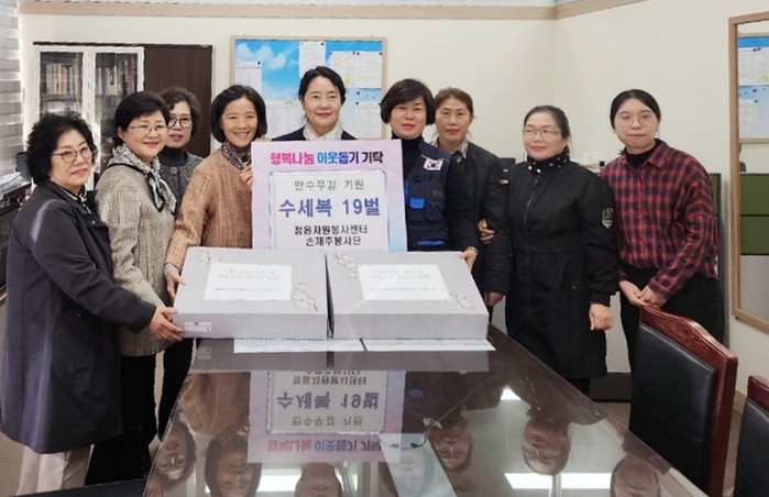 정읍시자원봉사센터(이사장 김철수) 손재주봉사단(단장 최숙정)은 지난 13일 직접 만든 수세복 19벌을 시에 전달하며 따뜻한 나눔을 실천했다.