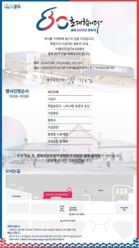 항일·민주정신과 촛불로 민주주의를 지켜온 광복 이후 광주의 80년을 기억하고, 인공지능(AI)과 미래차 등 첨단산업, 문화 역량으로 펼쳐갈 앞으로의 80년에 대한 희망을 담았다.