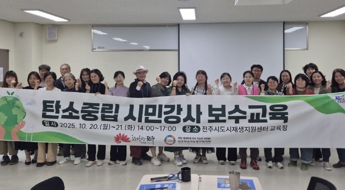 진교훈 전주시 복지환경국장은 “이번 교육이 시민강사들에게 탄소중립 교육의 중요성을 다시금 일깨우고 전문성을 높이는 계기가 되길 바란다”면서 “앞으로도 시민 눈높이에 맞춘 교육 콘텐츠를 개발과 보수교육 확대를 통해 탄소중립 실천 문화를 확산하겠다고”고 말했다.