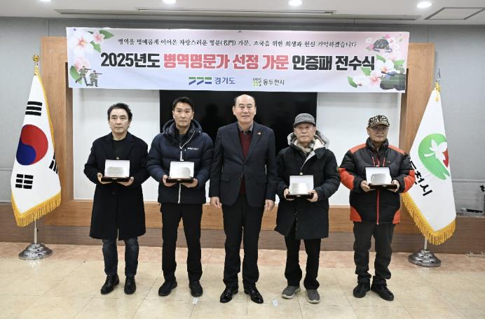 올해 동두천시에서는 총 11가문이 병역명문가로 선정됐다. 동두천시장은 병역명문가 대표에게 경기도 병역명문가 인증패를 직접 전수하고, 축하와 감사의 뜻을 전했다.