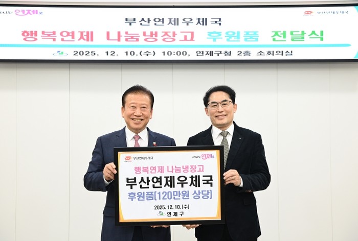 이번 후원은 지역 내 어려운 이웃을 돕고자 마련된 것으로, 후원품은 거제1동, 연산4동, 연산6동(동별 40만 원 상당)에 각각 전달되어 취약계층 먹거리 지원 사업에 사용될 예정이다. 부산연제우체국은 매년 나눔냉장고 사업을 꾸준히 후원하며 지역사회에 기여해오고 있다.
