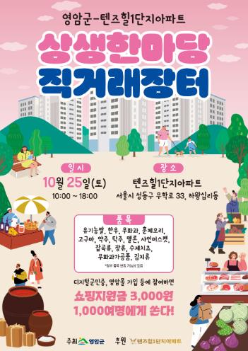 [파이낸셜경제=김예빈 기자] 영암군이 25일 서울 성동구에서 ‘영암군 & 텐즈힐1단지아파트 상생 한마당 직거래장터’를 개최한다.