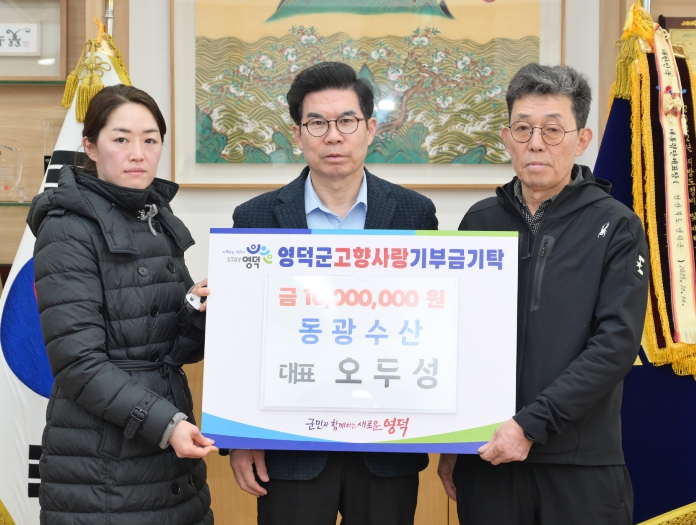 [파이낸셜경제=김지훈 기자] 영덕군에서 오징어 원물 가공을 주력으로 운영하는 동광수산의 오두성 대표가 지역사회 발전에 이바지하기 위해 지난 2일 김광열 영덕군수를 만나 고향사랑기부금 1,000만 원을 전달했다.