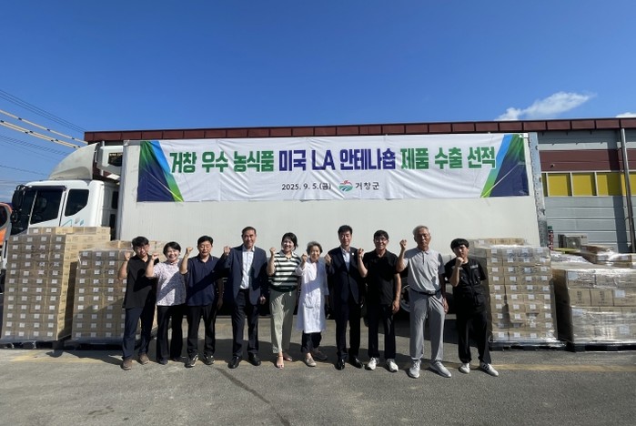 군은 지난 5일 ‘거창 우수 농식품 미국 LA 안테나숍’ 출하 행사를 열고 17개 품목, 약 2만 9천 달러(한화 약 4천만 원) 규모의 수출물량을 선적했으며, 사과즙, 건조여주, 콜라겐, 청국장, 부각 등 건강과 전통을 담은 다양한 제품들이 포함됐다.