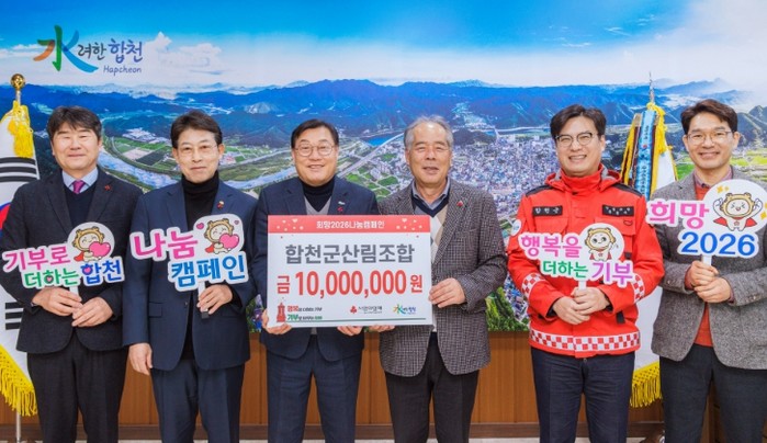 김윤철 합천군수는 “매년 변함없는 따뜻한 나눔을 실천해 주시는 합천군산림조합에 깊이 감사드린다”며 “기탁된 성금은 도움이 꼭 필요한 이웃들에게 소중히 전달 하겠다”고 전했다.