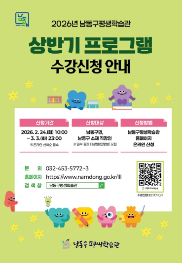 | ▲ 남동구 평생학습관, 2026년 상반기 프로그램 학습자 모집 |