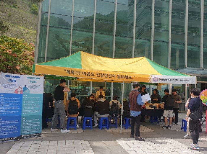 이어, 오는 28일 오전 10시부터 오후 5시까지 금산다락원 스포츠센터앞에서 정신질환 인식개선을 위한 체험부스를 운영하고 정신건강 상담 안내 등을 진행한다.