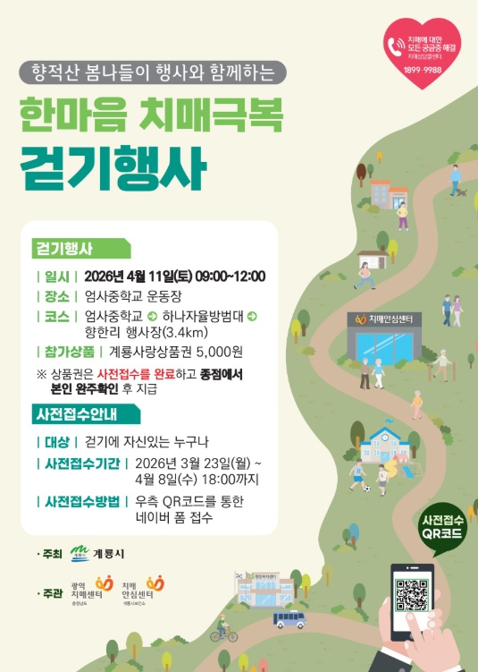 걷기 행사 참여를 희망하는 시민은 홍보 포스터에 있는 QR코드로 접수하면 되며, 접수 기간은 3월 23일부터 4월 8일까지다.