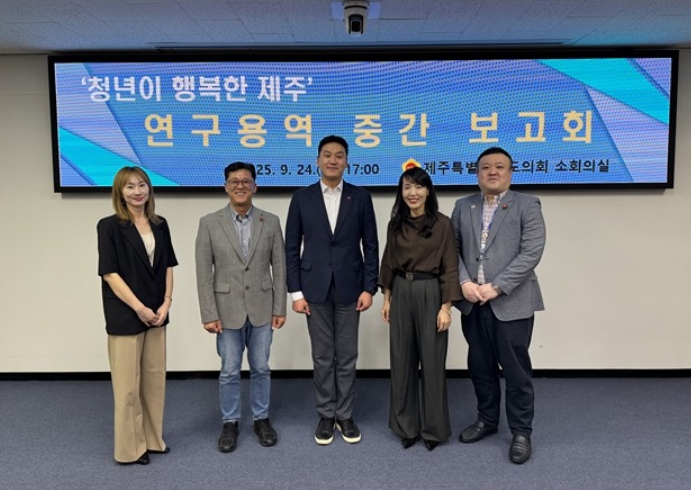 [파이낸셜경제=김영란 기자] 제주특별자치도의회 김기환 의원(더불어민주당, 이도2동 갑)이 대표를 맡고 있는 의원 연구단체 ‘청년이 행복한 제주’가 연구용역 중간 보고회를 개최했다.