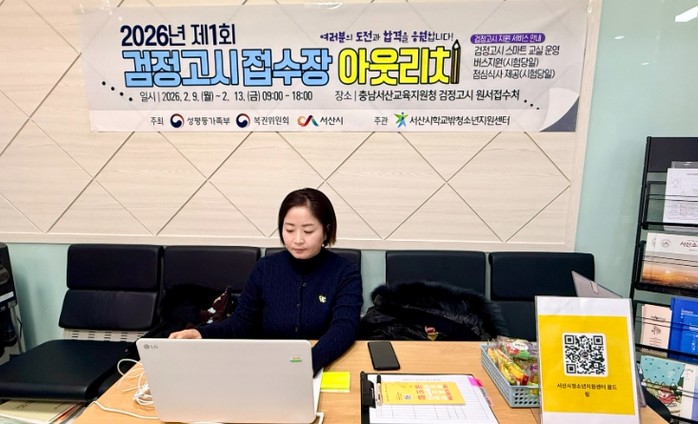 [파이낸셜경제=김영란 기자] 서산시학교밖청소년지원센터(센터장 유인화)는 지난 2026년 2월 9일(월)부터 2월 13일(금)까지 5일간, 충청남도서산교육지원청 검정고시 접수 현장에서 학교 밖 청소년들을 위한 아웃리치 활동을 활발히 전개했다.