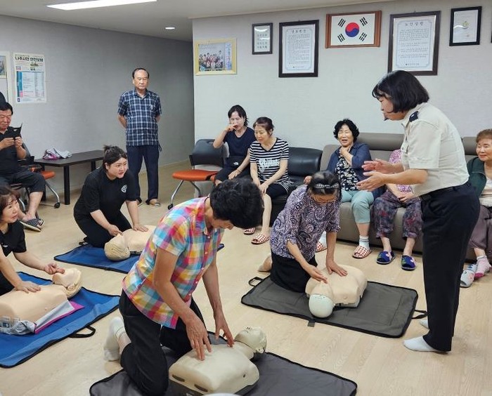 이번 교육은 노인 심정지 환자가 증가하는 현실을 고려해 실제 응급상황 발생 시 어르신들이 신속하게 대응할 수 있도록 돕는 데 목적이 있다.