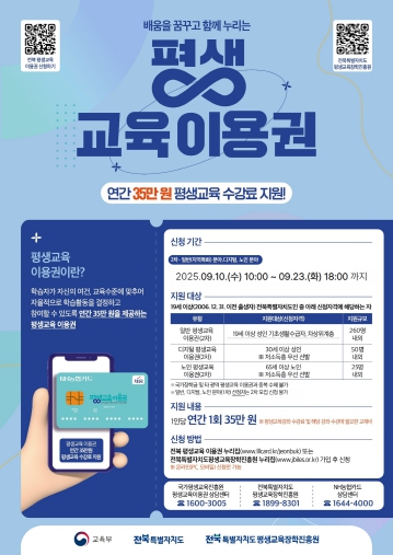 | ▲ (포스터)[타기관]전북특별자치도, 평생교육이용권(바우처) 2차 추가 모집…도민 335명 지원 |