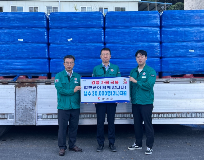 [파이낸셜경제=김예빈 기자] 합천군은 극심한 가뭄으로 생활용수 공급에 어려움을 겪고 있는 강원특별자치도 강릉시에 생수 2리터 3만 병을 긴급 지원한다고 16일 밝혔다.