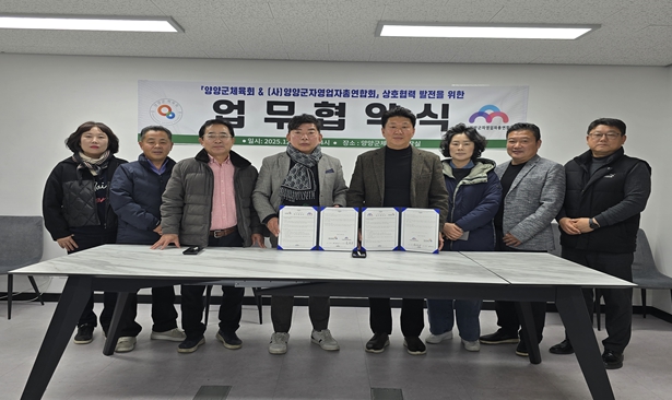 [파이낸셜경제=조성환 기자] 양양군체육회와 (사)양양군자영업자총연합회는 지난 12월 3일에 지역 경제와 체육의 상호 시너지 효과를 높이기 위한 업무협약을 체결했다.