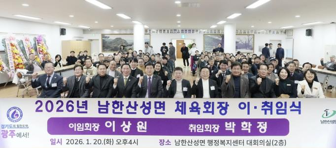 [파이낸셜경제=김기보 기자] 광주시 남한산성면 체육회는 지난 20일 남한산성면 행정복지센터에서 ‘2026년 남한산성면 체육회장 이·취임식’을 개최했다.