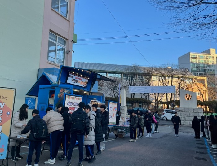 현장에서는 학생들에게 핫도그 간식을 제공하며 격려하고, ‘올 한 해 나에게 듣고 싶은 말은?’을 주제로 한 참여 공간을 운영해 학생들이 스스로를 돌아보는 시간을 가졌다.