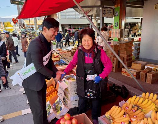 [파이낸셜경제=김예빈 기자] 이현창 전라남도의원(더불어민주당, 구례)은 지난 11월 13일 구례 5일시장을 방문해 '전통시장 장보기 및 기부 캠페인'에 참여했다.