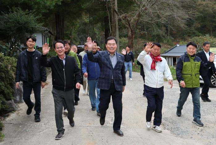 김산 군수는 이번 행사를 통해 “앞으로도 주민들의 건강을 위하여 다양한 보행길을 조성할 계획이며 치유의 숲 주변에 2027년까지 숲속야영장을 조성하는 등 다양한 산림휴양시설을 도입하여 물맞이골을 산림복지단지로 조성하겠다”고 밝혔다.