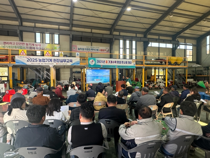 연시회에서는 기계의 취급·조작, 안전사용, 보수점검 등 전반적인 운용 사항을 점검하며, 콩 수확용 콤바인 1대를 이용한 수확 전 과정의 기계화 작업 시연으로 진행했다.