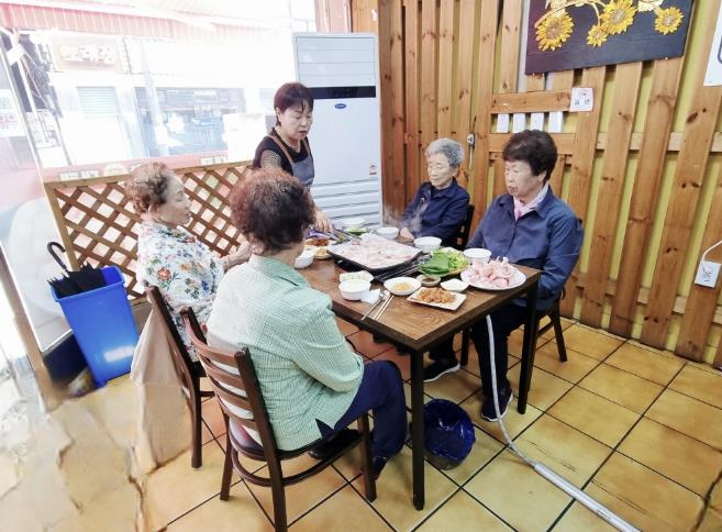 이날 역시 푸짐한 삼겹살과 신선한 쌈 채소, 밑반찬 등 어르신들의 건강을 고려한 정성스러운 식사를 준비해 따뜻한 한 끼를 전했다.