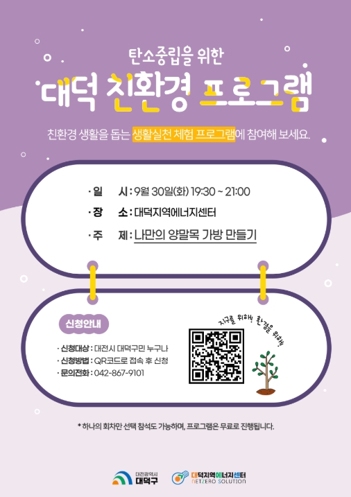 프로그램은 대덕구민이라면 누구나 무료로 신청할 수 있다. 자세한 내용은 홍보 포스터의 QR 코드를 통해 확인할 수 있다.