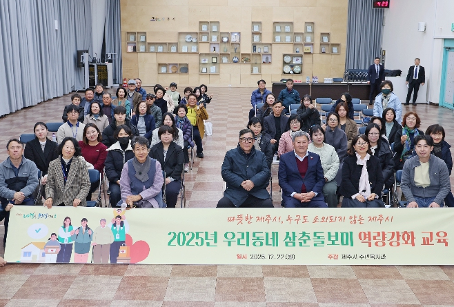 이번 교육은 시민과 가장 가까운 곳에서 어려운 이웃을 살피고 지원하는 삼춘돌보미와 지역복지 일선에서 업무를 수행하는 담당 공무원의 전문성을 높이기 위해 마련됐다.