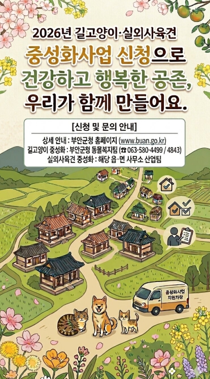 | ▲ 부안군, 2026년 실외사육견·길고양이 중성화 지원사업 |