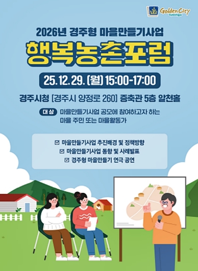 특히 2026년부터 단계적으로 추진될 ‘경주형 마을만들기 사업’의 주요 변경 사항과 추진체계 개편 방향을 집중적으로 다룰 계획이다.