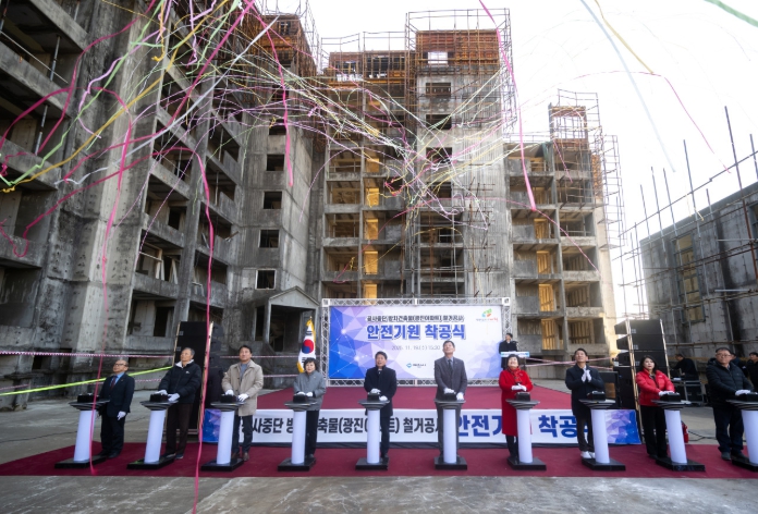 [파이낸셜경제=김기보 기자] 제천시는 19일 도심 속 흉물로 장기간 방치된 건축물(광진아파트)의 철거공사 안전기원 착공식을 개최했다.