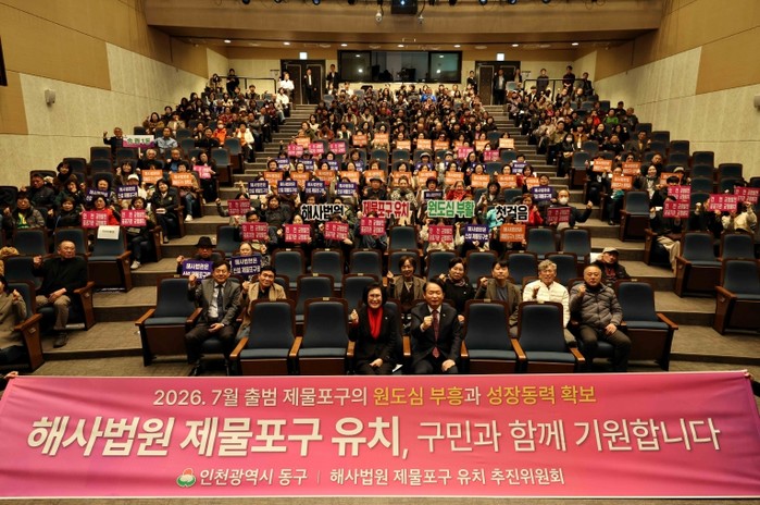 한편, 동구는 지난달 22일 해사법원 제물포구 유치 토론회를 개최하며 역사성, 상징성, 접근성 측면에서 제물포구가 최적지임을 확인한 바 있으며 해사법원이 제물포구에 유치되면 지역 경제 성장과 양질의 일자리 창출은 물론, 공공기관 및 민간기업과의 시너지를 통해 해양 사법의 중심지로 자리 잡을 것으로 기대하고 있다.