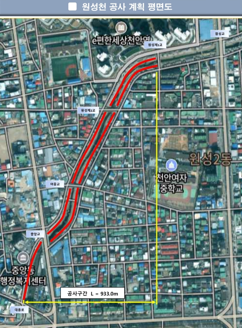 | ▲ 1. 천안시 원성천 하수관로 정비공사 구간 평면도. |