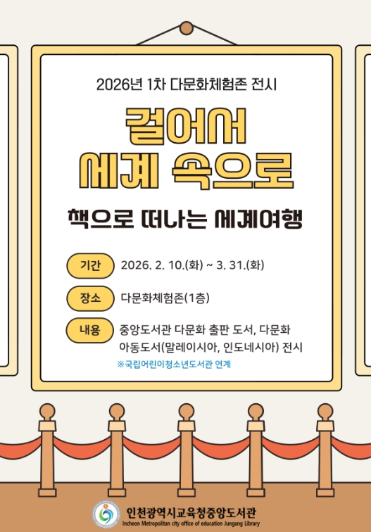 [파이낸셜경제=김기보 기자] 인천광역시교육청중앙도서관은 2월 10일부터 3월 31일까지 1층 다문화체험존에서 ‘책으로 떠나는 세계여행’ 전시를 개최한다.
