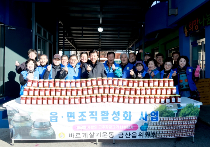 [파이낸셜경제=김영란 기자] 금산군 바르게살기운동 금산읍위원회(회장 김광옥)는 11월 28일 금산읍행정복지센터에서 사랑의 고추장 담그기에 나서며 이웃사랑을 실천했다.