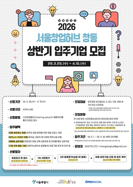 | ▲ '2026 서울창업허브 창동 상반기 입주기업 모집' 포스터 |