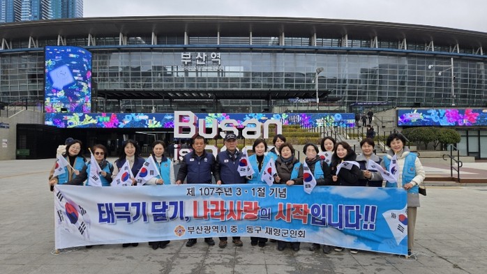 [파이낸셜경제=박영진 기자] 부산광역시 중·동구재향군인회는 지난 2월 26일 부산역 일원에서 제107주년 3·1절을 기념해 태극기 나눔 행사를 개최했다.