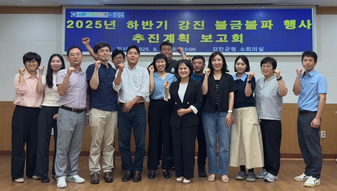 강진군은 하반기 재개장을 앞두고 8월 12일 군청 소회의실에서 부서별 관계자 14명이 참석한 가운데 ‘2025년 하반기 강진 불금불파 행사 관련부서 회의’를 개최했다.