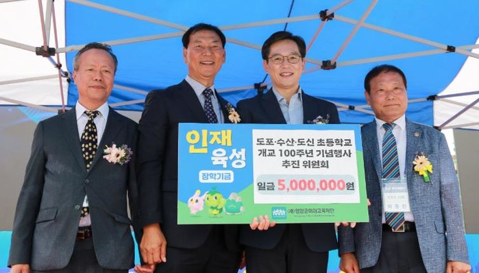 [파이낸셜경제=김예빈 기자] 영암 도포·수산·도신초등학교 100주년 기념행사 추진위원회가 20일 (재)영암군미래교육재단에 인재육성기금 500만원을 전달했다.