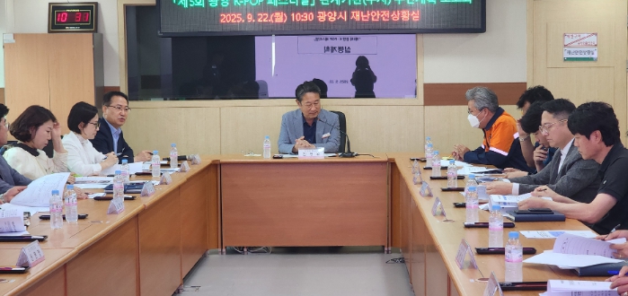 22일 재난안전상황실에서 열린 보고회에는 T/F팀 단장인 김정완 광양 부시장을 비롯해 관계기관과 공무원 20여 명이 참석해 추진상황을 공유하고 의견을 나눴다.
