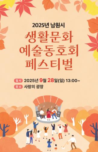 [파이낸셜경제=김예빈 기자] 남원시가 후원하는 2025 남원시 생활문화예술동호회 페스티벌이 9월 28일에 남원 사랑의 광장에서 개최한다.