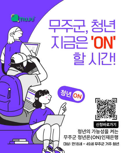 한편, 올해 무주군의 청년 예산은 1백2억 3천여만 원 규모로, '청년온(ON) 인재은행' 운영 외에도 지역 내 청년 삶의 질 향상을 위한 다양한 정책을 추진 중이다. 2025년 청년친화도시 지정을 목표로 추진하고 있는 일자리, 주거, 교육, 복지·문화, 참여·권리 등 7대 분야에 걸친 청년 정책이 대표적이다.