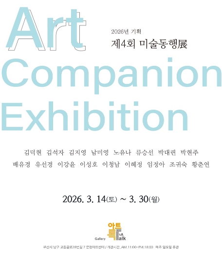 [파이낸셜경제=김영란 기자] 부산남구문화재단(이사장 김철)은 오는 3월 14일부터 3월 30일까지 문현아트센터에서 '2026 기획전시 제4회 미술동행전'을 개최한다고 밝혔다.