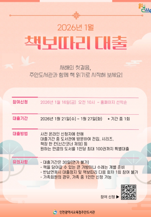 1월 '책 보따리 대출' 신청은 16일 오전 10시부터 주안도서관 누리집에서 가능하다.