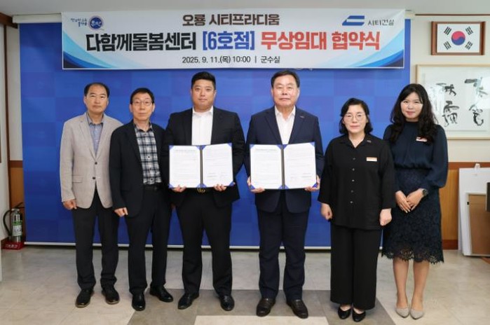 이번 협약에 따라 시티프라디움 입주자대표회의는 주민공동시설 일부(86.5㎡)를 돌봄센터 공간으로 10년간 무상으로 제공하며, 군은 위탁 법인을 선정해 2026년 3월 오룡지역 초등 돌봄 수요를 해소할 ‘다함께돌봄센터 6호점’을 개소할 예정이다.