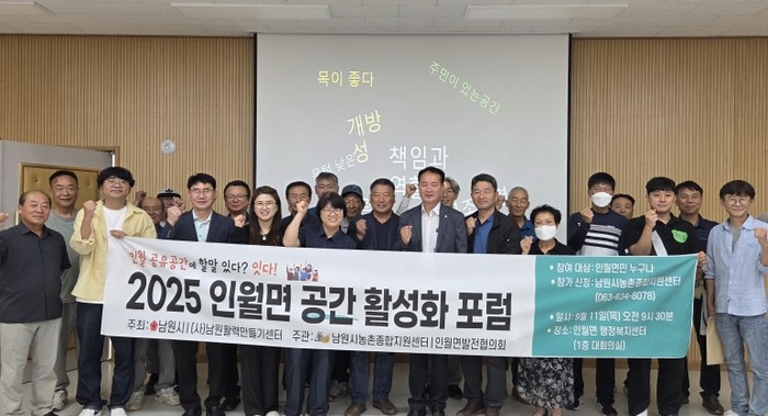 [파이낸셜경제=김예빈 기자] 남원시농촌종합지원센터는 지난 11일 시군역량강화사업의 일환으로 인월면 발전협의회와 함께 '2025 인월면 공간활성화포럼'을 개최했다.