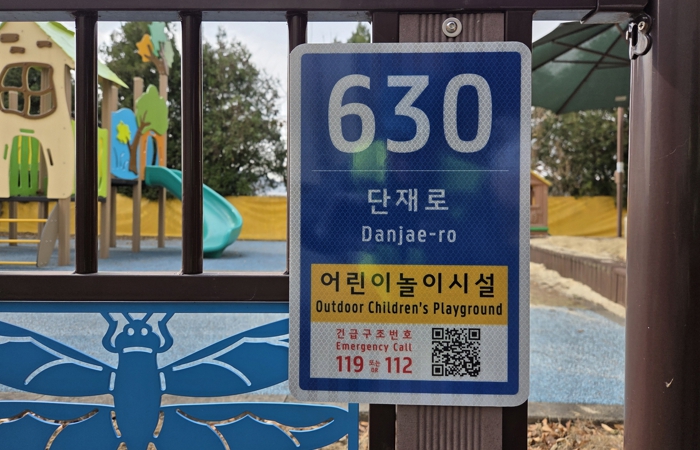 어린이놀이시설은 아이들에게 하루 중 가장 자유롭게 활동하는 공간이지만, 그동안 건축물이 아니라는 이유로 주소 표지판이 설치되지 않아 위급 상황 발생 시 정확한 위치 안내에 어려움이 있었다.