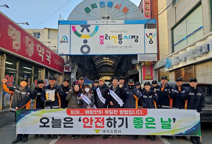 겨울철은 난방기구 사용이 증가하는 시기로, 전통시장은 점포 밀집 구조와 노후된 시설 등으로 인해 화재 발생 시 대형 피해로 이어질 우려가 커 선제적인 예방 활동이 필요하다. 이에 대전소방본부는 겨울철 전통시장 화재 예방을 위해 이번 캠페인과 안전점검을 추진했다.