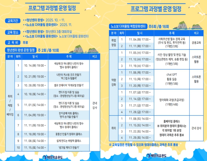 | ▲ 완도군, 군민·청년 맞춤형 프로그램 수강생 모집 및 일정 안내 |