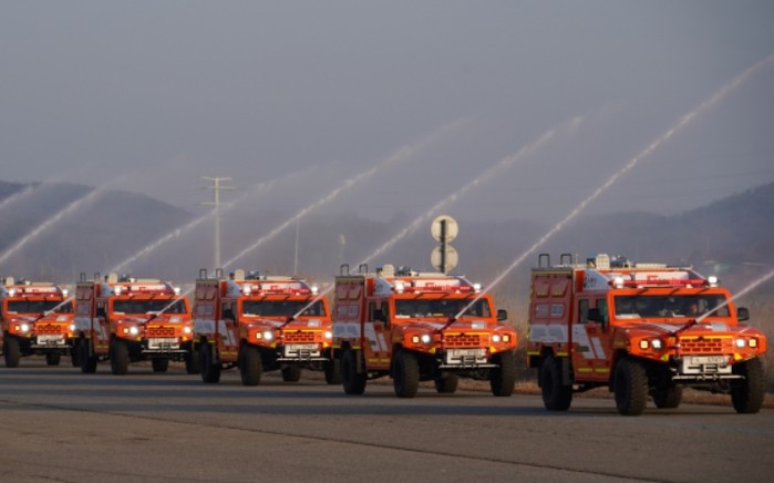 | ▲ 국산 군용차를 기반으로 제작한 다목적산불진화차량 시연 |