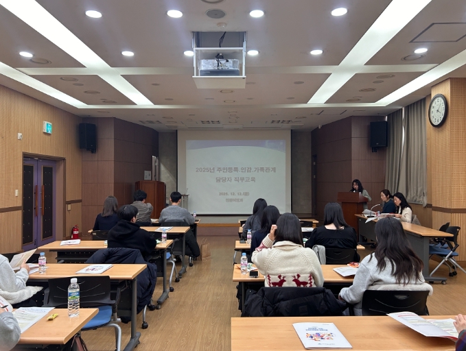 주요 교육 내용은 ▲2025년 개정된 주민등록 및 인감(본인 서명) 법령 주요 내용, ▲주민등록 관련 행정안전부 주요 안내 사항, ▲전입신고 처리 및 주민등록증 발급 시 유의 사항, ▲개정된 가족관계등록사항 예규 및 출생·사망신고 실무 지침 등으로 내실 있게 구성됐다.