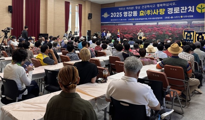 [파이낸셜경제=김예빈 기자] 전라남도 나주시 영강동은 지난 11일 어울림센터에서 어르신 250여 명을 모시고 ‘효사랑 경로잔치’를 성황리에 개최했다.